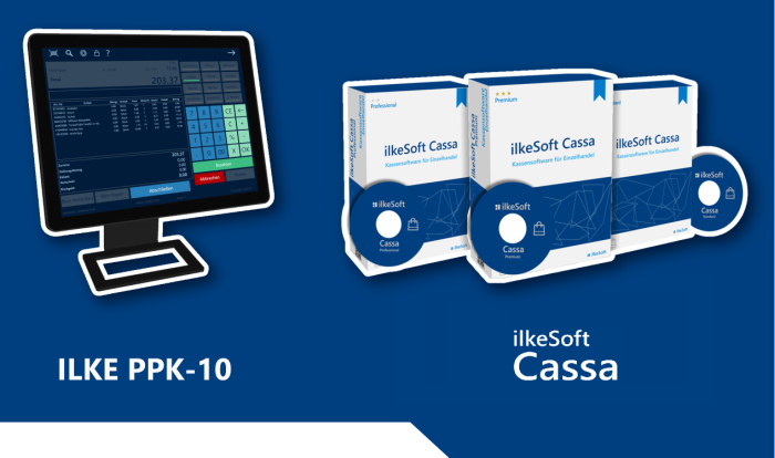 Die Zusammenstellung von All-in-One-Touchkasse ilke PPK-10 und die Kassensoftware ilkeSoft Cassa bildet die optimale und unkomplizierte Kassenlösung für Ihren Handelsbetrieb.